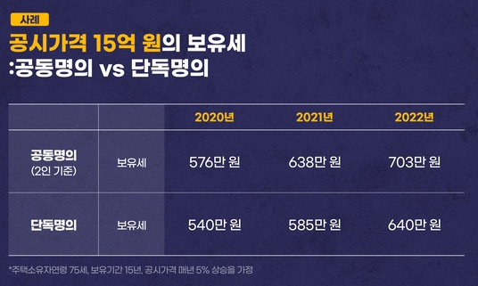 사실 선택의 폭이 넓어진거니깐 잘 판단해 보셔야 하고 선택하실 때 공동 명의가 대부분 5:5이지만 6:4, 7:3인 경우에는, 이번에 개정된 종부세 법을 살펴보시면 만약에 6:4인 경우라면 지분이 많은 사람한테 명의를 이제 단독명의로 옮겨야 되는 거고, 그런데 만약에 5:5라고 하면 이제 선택 할 수 있게끔 이렇게 돼서 사실 명의보다는 계산했을 때 세금이 얼마 나오냐가 중요하니까 잘 판단해 봐야 합니다.