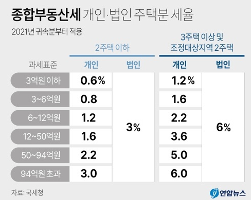 참고로 1~2주택자는 전년대비 최대 1.5배이고, 3주택이상의 경우 최대 3배 입니다. 그러니까 아무리 주택가격이 올랐다고 하더라도 1~2주택자는 전년에 납부한 종부세의 1.5배를 넘지 않고, 다주택자 종부세 역시 전년도의 3배를 넘기지 않게 됩니다.