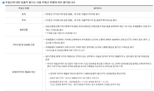 토지는 개별공시지가로 평가가 되며, 주택은 개별주태각격 및 공동주택가격을 기준으로 하고 있습니다.